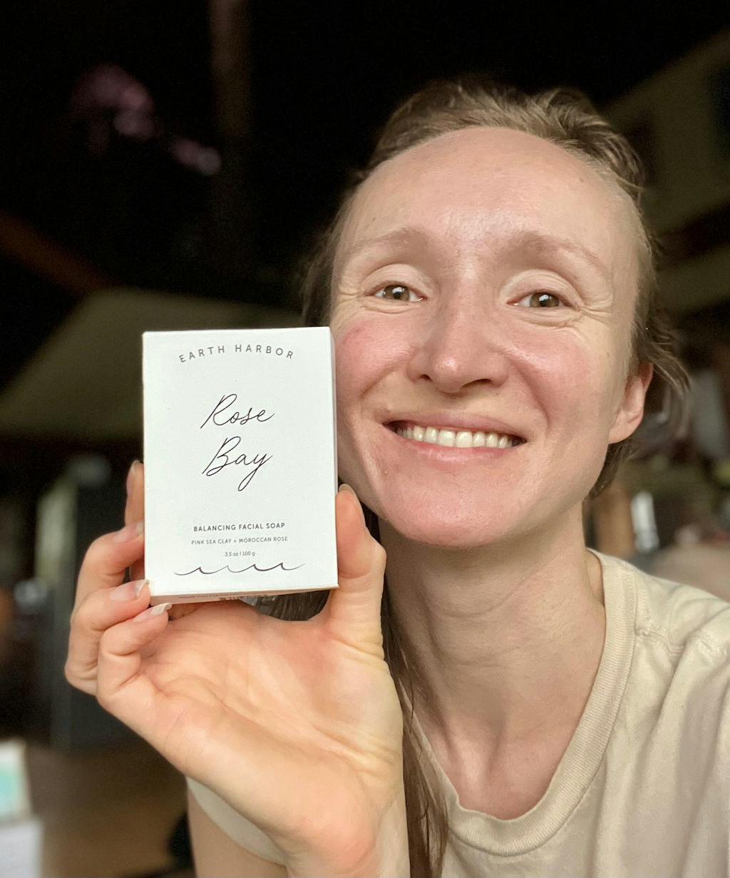 - Made with Moroccan rose extract, coconut oil, rose geranium oil, and Australian pink sea clay
