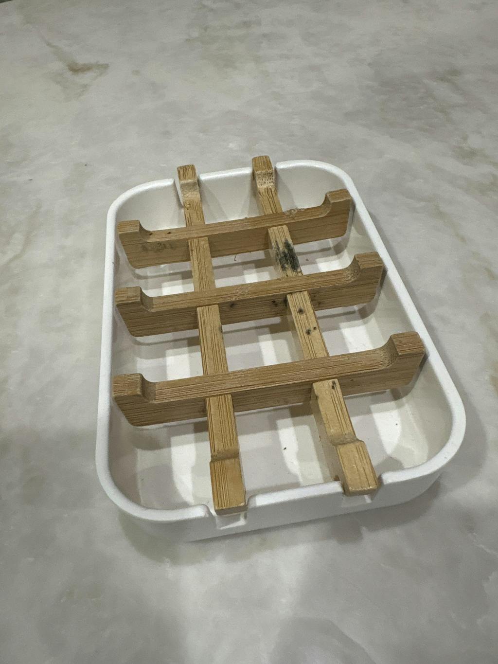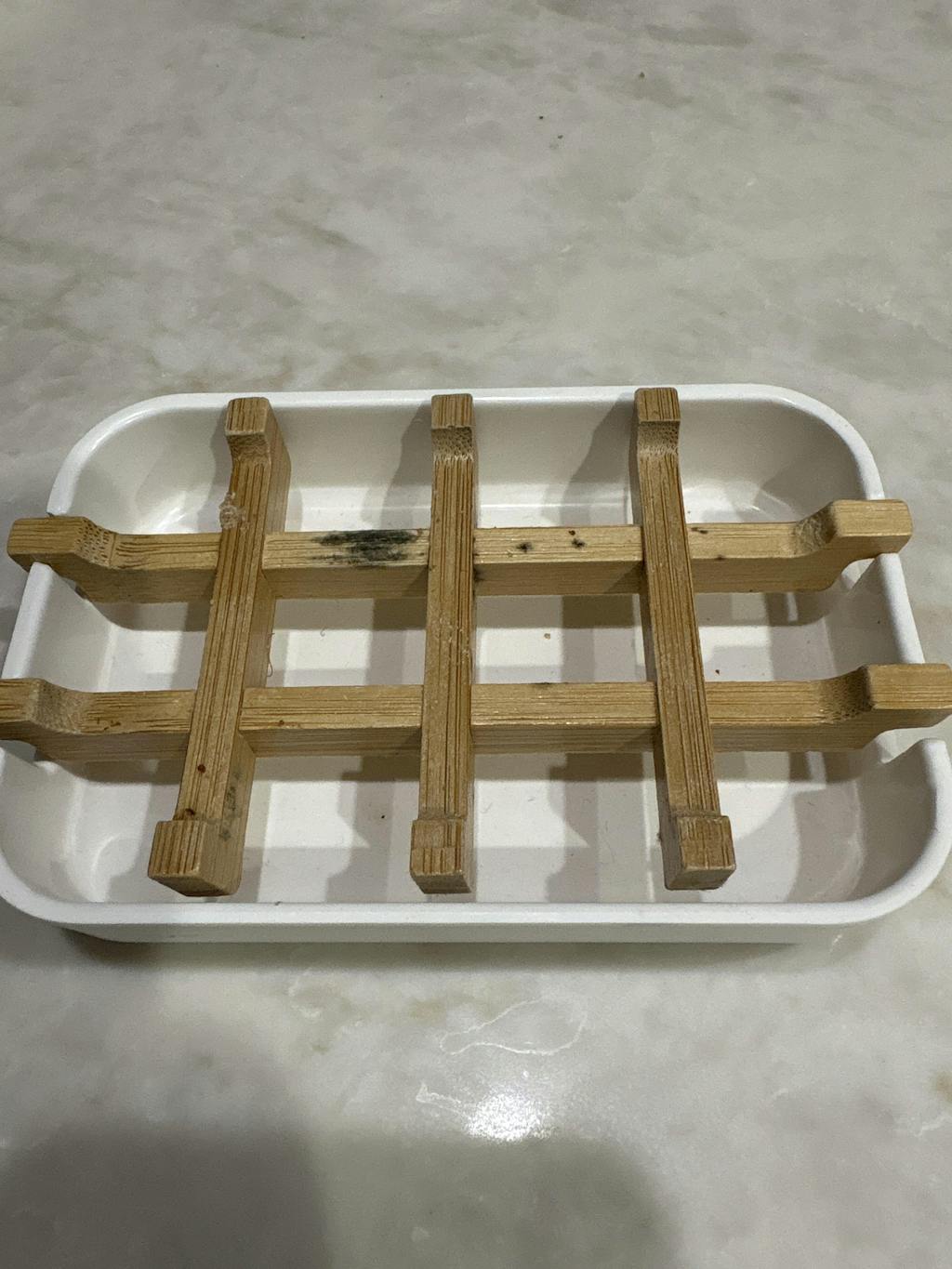 This Bamboo & Corn Starch Soap Dish quickly drains water off of your soap bars to help them last longer. The bamboo grid holds the soap above the bottom tray which catches all the water. No more sticky mess on your countertops! The bamboo grid is easily removable for cleaning.
