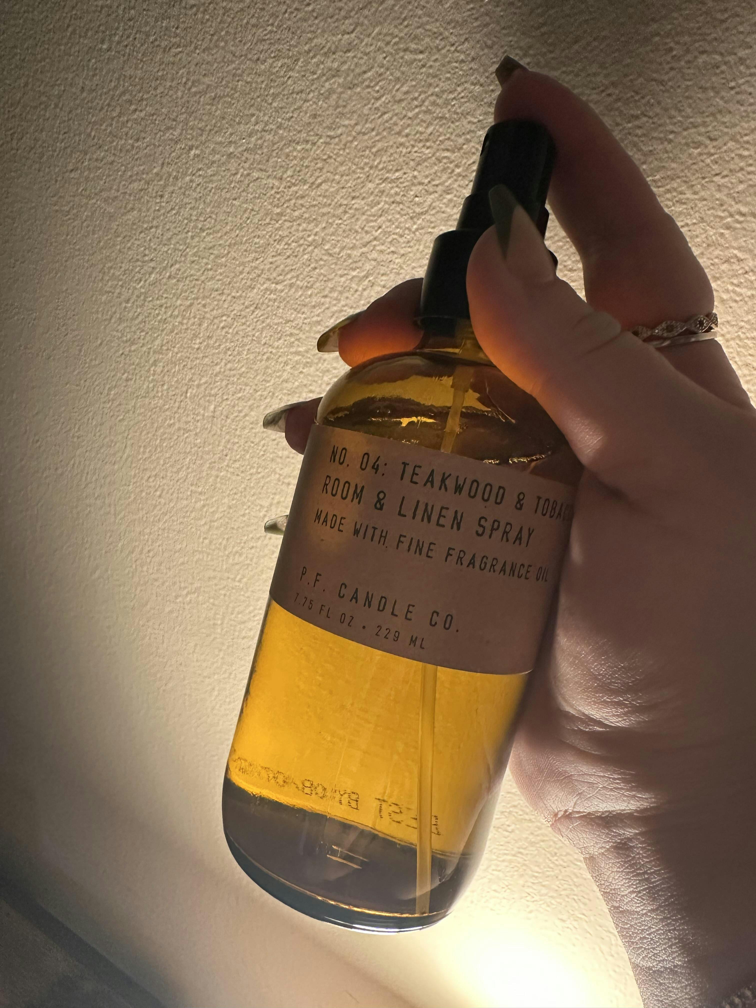 Some call it the boyfriend scent, we call it the O.G. Notes of leather, teak, and orange. This spray offers an effortless, fine mist with a light fragrance! Meant for daily use on bedsheets, pillows, couches - anywhere that needs a bit of a boost.